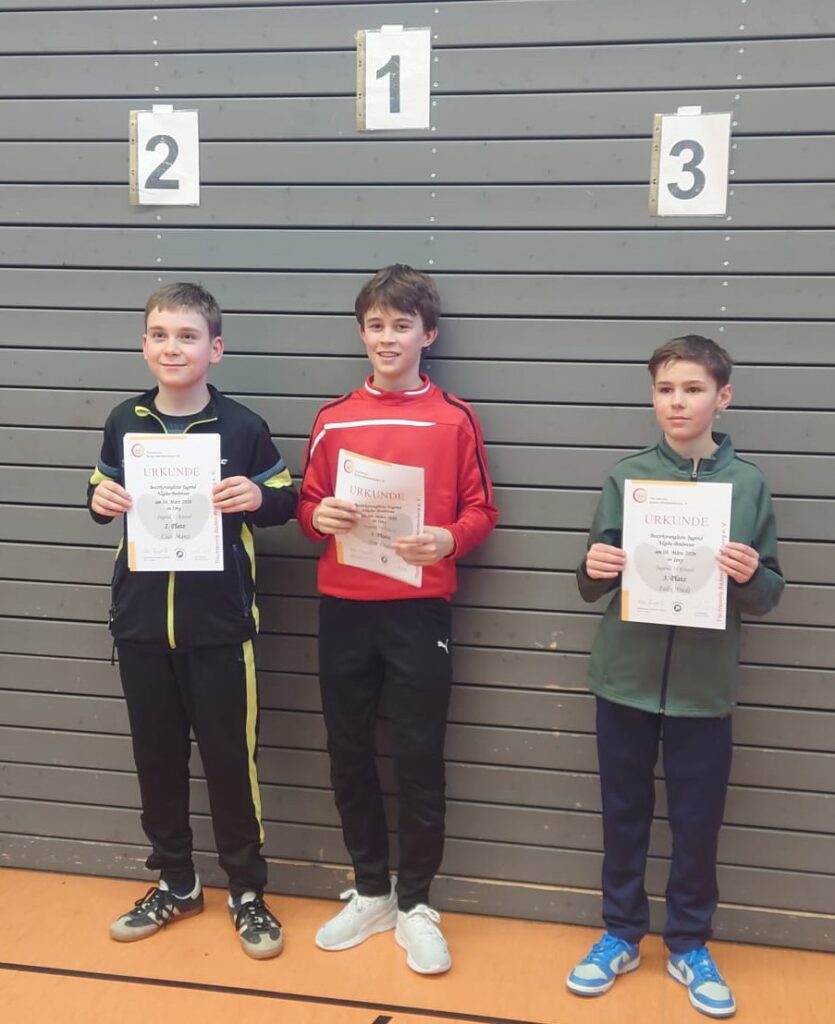 Somit zeigte sich die SGA-Jugend bestens vorbereitet, qualifizierten sich mit Luca Utoiu-Agache, Luis Manz, Nele Angele und dem vornominierten Georg Messner gleich vier Nachwuchskräfte für die Regionsjahrgangsrangliste in Biberach, wo sich nun die Besten der Bezirke Ulm, Donau, Ostalb und Allgäu/Bodensee um die Qualifikation für die Baden-Württembergische Jahrgangsrangliste sicherlich heiße Kämpfe liefern werden.