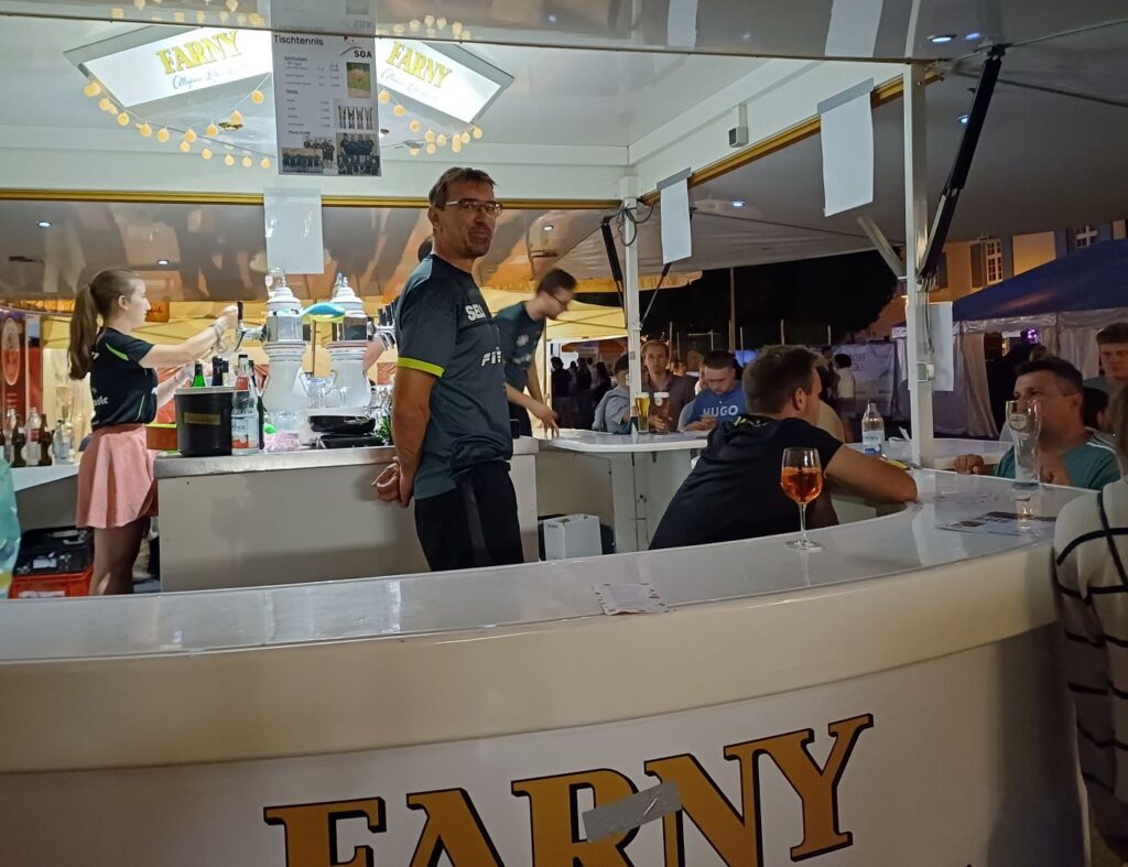 Auch dieses Jahr wieder war die Tischtennisabteilung mit einem Getränkestand am Schloss- und Kinderfest beteiligt. Ein Teil der Abteilungsmitglieder unterstützt von Eltern der Jugendspieler/innen sorgten für das leibliche Wohl der vielen Gäste und so konnte trotz des teilweise durchwachsenen Wetters eine äußerst positive Bilanz gezogen werden, konnte doch wieder ein nicht unerheblicher Teil der bevorstehenden Kosten für die neue Saison erwirtschaftet werden. Viele dem Verein treu verbundene Gäste konnten wieder am Stand begrüßt werden, und bei einem kleinen Pläuschchen wurden alte Erinnerung oder neue Ziele ausgetauscht.