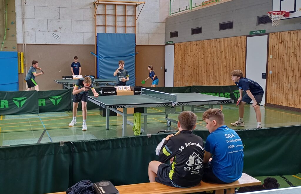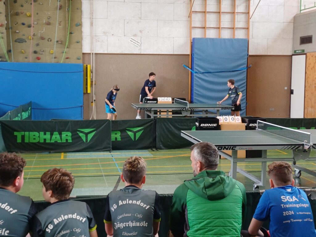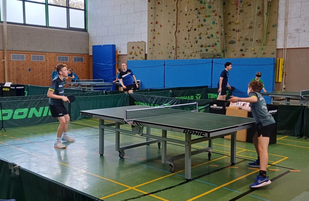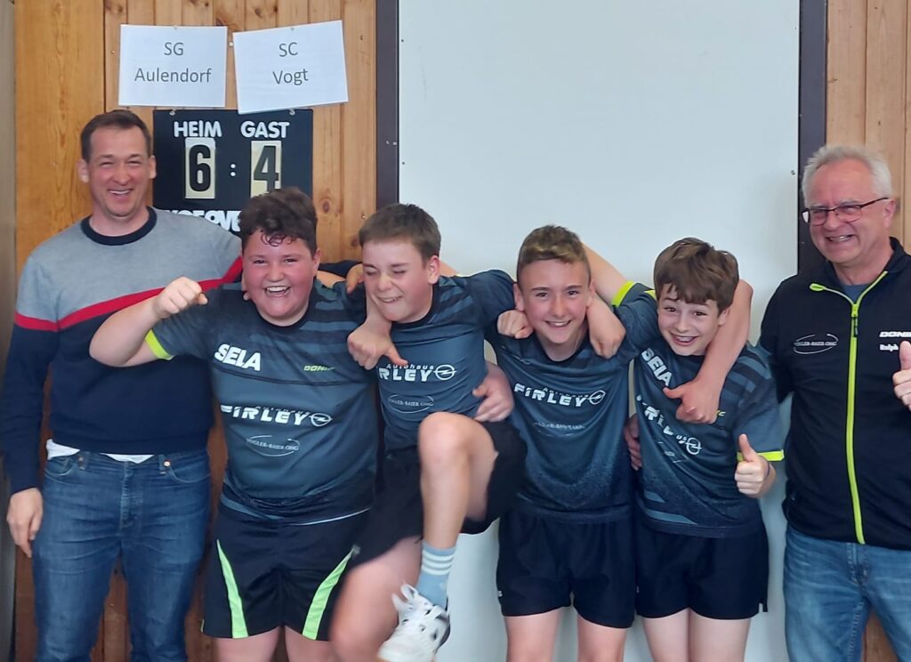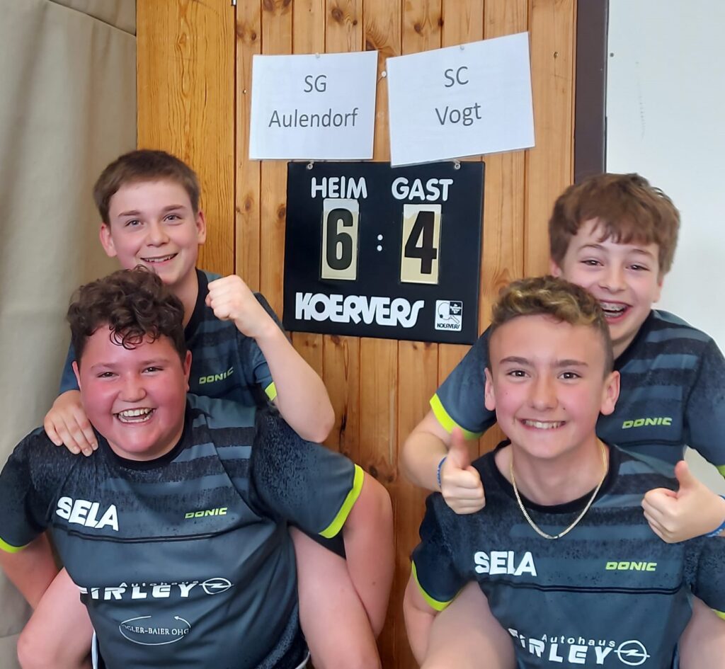 Spannung, Dramatik, Frust, Freude, Teamgeist – all das war am Sonntag in Kißlegg geboten, wo es um die Qualifikation zur Regionsmannschaftsmeisterschaft der Jugend U15 ging. Die Jungs der SGA standen dem Team vom SC Vogt gegenüber und es war von vorneherein klar, dass es ein Match auf Augenhöhe werden würde. Gut in die Partie gekommen konnten Georg/Nicolas die knappe Niederlage von Jakob/Luis ausgleichen. Vorne musste sich Nicolas dem starken Einser aus Vogt geschlagen geben, während Georg beim 3:1 Erfolg ausgleichen konnte. Hinten gewann Luis souverän mit 3:0, während Jakob in einem tollen Match im fünften Satz in der Verlängerung das Glück nicht auf seiner Seite hatte. Zwischenstand somit 3:3 und auch der zweite Durchgang begann mit einer Punkteteilung. Nicolas gewann sicher, während auch Georg kein Mittel gegen den Spitzenspieler fand. Dann jedoch kam die Stunde des hinteren Paarkreuzes. Während Jakob sicher mit 3:0 seine Stärken einsetzen konnte, spielte Luis zunächst etwas gehemmt angesichts der engen Kiste und lag bereits mit 0:2 Sätzen zurück, bevor er sich in einen wahren Spielrausch spielte und das Spiel zum 3:2 Sieg herumriss und somit den 6:4 Mannschaftserfolg sicherte. Groß war die Freude, da man nun am kommenden Sonntag bei den Regionsmannschaftsmeisterschaften ebenfalls in Kißlegg den Bezirk Allgäu/Bodensee vertreten darf, und ein wahres Highlight im Tischtenniskalender feiern darf. Gratulation an das aufopferungsvoll kämpfende Team