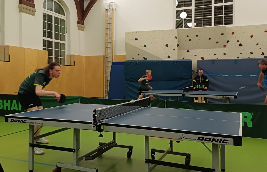 Gegen den Tabellenführer gelang ein nicht erwarteter doppelter Punktgewinn und führte die SGA ins Tabellenmittelfeld. Beide Mannschaften starteten nicht in ihrer Stammformation, dennoch ging Tettnang mit 2:1 nach den Doppeln in Führung. Dannach folgte jedoch eine Siegesserie von Siegen, bevor Senior Berthold Landthaler dem wie entfesselt aufspielenden Jugendspieler Biberger im Entscheidungssatz gratulieren musste. Es folgten 3 weitere Fünfsatzspiele bevor Jannis Wösle mit einer starken Leistung und einem 3:0 Erfolg den Sieg perfekt machte. Es spielten Sören Laichinger (1), Thomas Wenzel (2), Ralph Bitz (2), Jannis Wösle (2), Berthold Landthaler und Maren Bäumler (1)